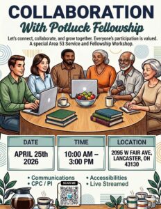 The committee serves districts and groups in Area 53 by sharing information and experience to strengthen the General Service Structure.